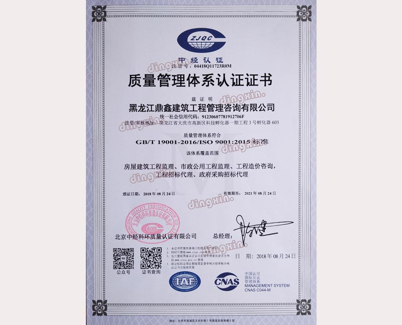 黑龍江鼎鑫建筑工程管理咨詢(xún)有限公司成立于2005年,注冊(cè)資金400萬(wàn)元。具備中華人民共和國(guó)住房和城鄉(xiāng)建設(shè)部批準(zhǔn)的工程招標(biāo)代理機(jī)構(gòu)資格、中華人民共和國(guó)財(cái)政部批準(zhǔn)的政府采購(gòu)招標(biāo)代理機(jī)構(gòu)資格、黑龍江省商務(wù)廳批準(zhǔn)的機(jī)電產(chǎn)品國(guó)際招標(biāo)代理機(jī)構(gòu)資格、中華人民共和國(guó)住房和城鄉(xiāng)建設(shè)部批準(zhǔn)的工程造價(jià)咨詢(xún)甲級(jí)資質(zhì)、黑龍江省住房和城鄉(xiāng)建設(shè)廳批準(zhǔn)的房屋建筑工程監(jiān)理乙級(jí)(市政公用工程監(jiān)理乙級(jí)資質(zhì))。主要從事建設(shè)工程及政府采購(gòu)招標(biāo)、造價(jià)咨詢(xún)、工程監(jiān)理、項(xiàng)目管理等業(yè)務(wù)。
